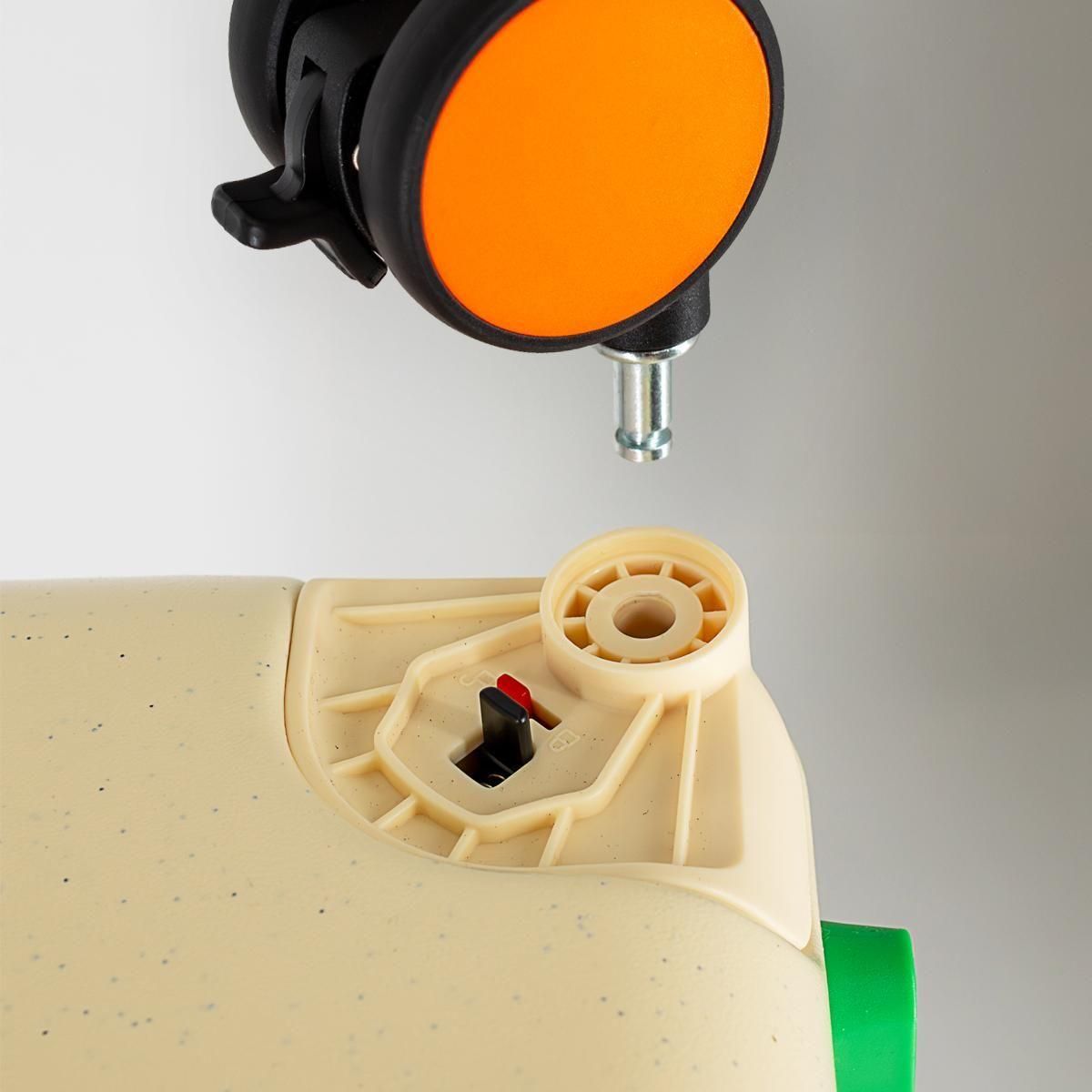 ロックを解除して引き抜くだけ、工具不要の簡単操作でキャスター交換が可能。